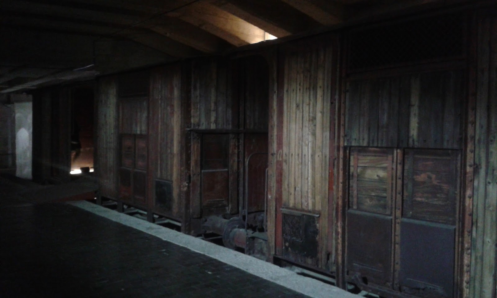 Arrivi finalmente al binario dove sono dei carri merci originari, del tipo utilizzato per le deportazioni. Puoi salire se vuoi, oppure girarci attorno. In uno trovi una corona e dei fiori. Ogni carro veniva stipato di persone – uomini, donne, bambini, vecchi, mamme e papà – fino all’inverosimile, a furia di calci e pugni, tra i latrati dei cani e le urla dei soldati, terrorizzanti perché sbraitavano in una lingua che nessuno capiva. Con sé avevano pochissimi oggetti, preparati nel giro di venti minuti dalla notifica della deportazione. Quindi il carro veniva piombato e posizionato su un carrello traslatore, che si muoveva lungo un’enorme galleria, visibile ancora oggi, poi immesso su un ascensore montavagoni e poi sollevato fino a raggiungere un binario di manovra all’aria aperta situato tra i binari 18 e 19. In questo modo nessun passante della stazione si rendeva conto di che cosa vi fosse al’interno di quei carri merci.
