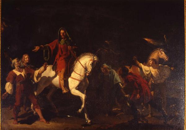 • “Bernabò Visconti riconosciuto da un contadino che lo accompagnava al Castello di Marignano” di Pasquale Vianelli (1820-1821) – Circolo ufficiali di Milano