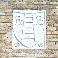 • Stemma della casata posto sul castello di Sirmione, si noti la scala a cinque pioli e non a quattro